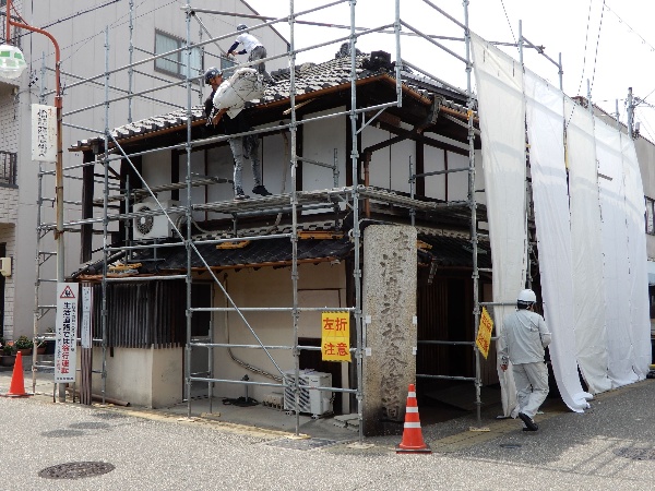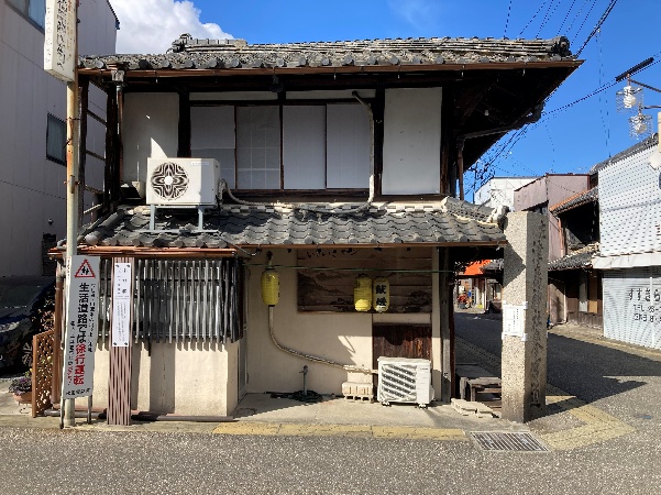 - 本建物は昭和20年以前の建築で、本町通の角地に面し津島神社の道標もあって歴史的に重要な建物である。もともとは「カネ長」の名称で商っていた魚屋の店舗で、平成に入ってから店舗を閉めて賃貸建物として利用されていた。しかし令和7年4月に空き家になったため、所有者から小商い機構に相談があった。そこで小商い機構としては拠点として2階を賃借する意向を固め、1階は軽飲食店舗が賃借することにした。